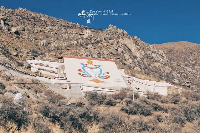 哲蚌寺不在拉萨市区,偏市区西北方向,建在高高的更丕乌孜山下,远远的看更丕乌孜山,会发现有很多关于藏传佛教的石刻与壁画,再仔细看的话,在山腰山顶还建有一些简陋的房屋,猜测是否住着藏民。