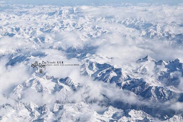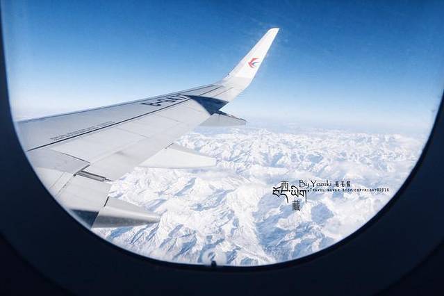 真正去了才发现,并没有越野车给我坐,公路也不会没有尽头,但在飞往拉萨的途中,就能看到白雪皑皑的雪山。感觉那么近,那么清楚,触手可及,连绵在一起,每越过一座山头,就离西藏更近一点。看雪山的兴奋感已经让我完全忘记飞机上的餐食真的不好吃。