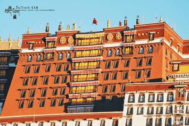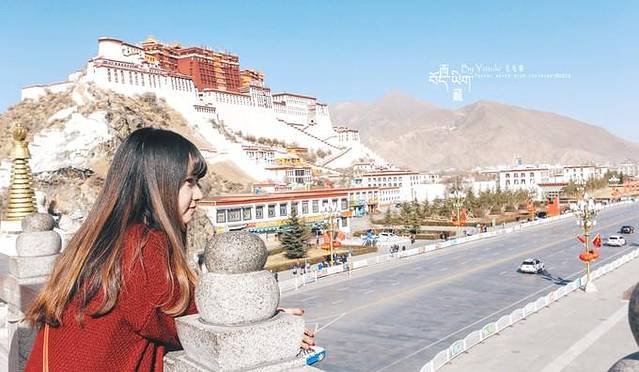 拍摄布达拉宫有2个最好的角度,其中之一就是从药王山的角度。清晨的时候,在药王山的观景台可以拍到日出,太阳从布达拉宫一侧缓慢升起,照遍大地,听说早上8点不到,小小的观景台就会摆满了三脚架,想拍日出要赶早哦。很多明信片的布达拉宫照也出自这个角度。