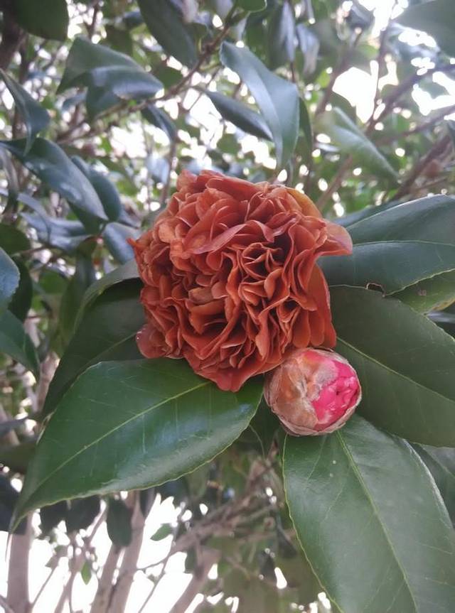 茶花 因为之前的超低温,都没有来得及谢就冻死了。这下真真是”宁可枝头抱香死“了。据说很多樟树也因为低温冻死了。幸好我们去这两天超级暖和。