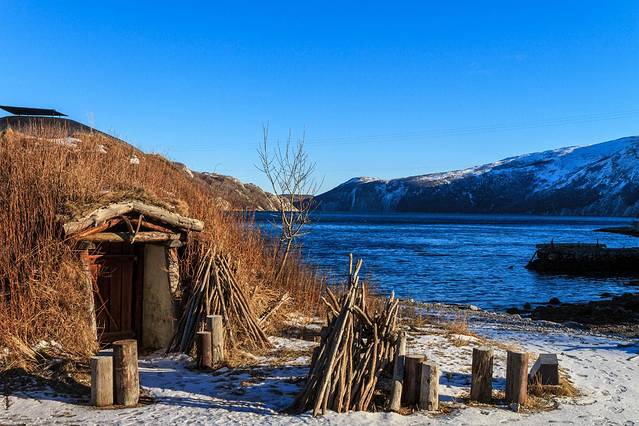 午餐就在萨特大桥旁这个复原的古代挪威人住宅里进行,有了兽皮的包裹,大家围着中间的火坑,并不觉得冷。