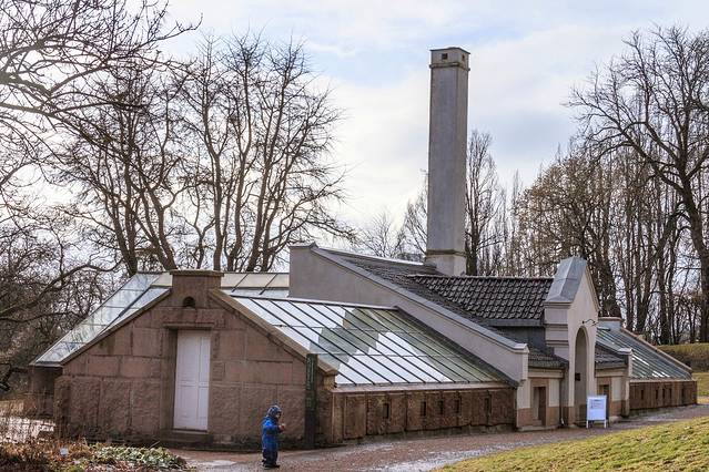 博物馆还没开门,先来讲讲这个跳台的历史和典故。作为奥斯陆的地标,这里举办过1952年的冬奥会和若干界世锦赛。因为发生过狗狗不受控制冲向比赛选手的事,对于高速运动中的运动员这是十分危险的,所以树立个雕像提醒观众:一定要牵好你家狗狗