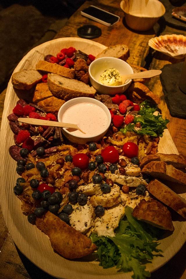 我们的午餐:面包和浆果,熊肉香肠、鲸鱼肉、驯鹿香肠还有最受欢迎的鳕鱼干。这些都是地道的当地物产,local经常吃的食物。其实还是鳕鱼干最受欢迎,其他的,都是这里食物稀缺没得选啊