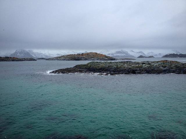 在岛上你可以选择很多活动,除了看捕鱼、观海鹰海豹还有钓鱼浮潜冲浪等等。不用担心天气,冬季这里的平均气温也就在0度左右,而且挪威人有精良装备对抗各种天气。比如今天我们就穿上了防寒防雨的连身裤,坐在船上一点儿也不冷,但记得戴上眼镜,船在海上蹦跶的时候风还是挺大的。而且这种充气的船好像很硬,迎着浪真的有点像蹦蹦跳跳的样子,晕船就坐船尾哈,我觉得还好,在浪上面飞起来的感觉还挺刺激的:P