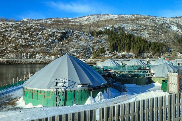 一个三文鱼农场,他们就生活在这个帐篷里,活动很受限,所以也没有野生的好吃:P 在苏格兰也看到过,当地人说相对牡蛎农场,养三文鱼对环境的损耗更大一些。
