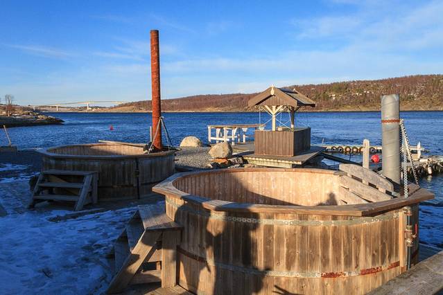 户外有桑拿池,主人给我们看了一张在这里看着极光泡着汤的图片,太让人羡慕了