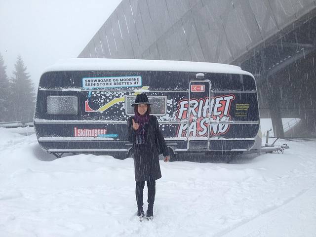 第二天阴天,向导看看天气说先去滑雪博物馆(M1,Holmenkollen)吧,到达的时候已经开始下雪,真是太应景了!山脚下的小朋友还排着队在学滑雪,这真是他们生活的一部分!