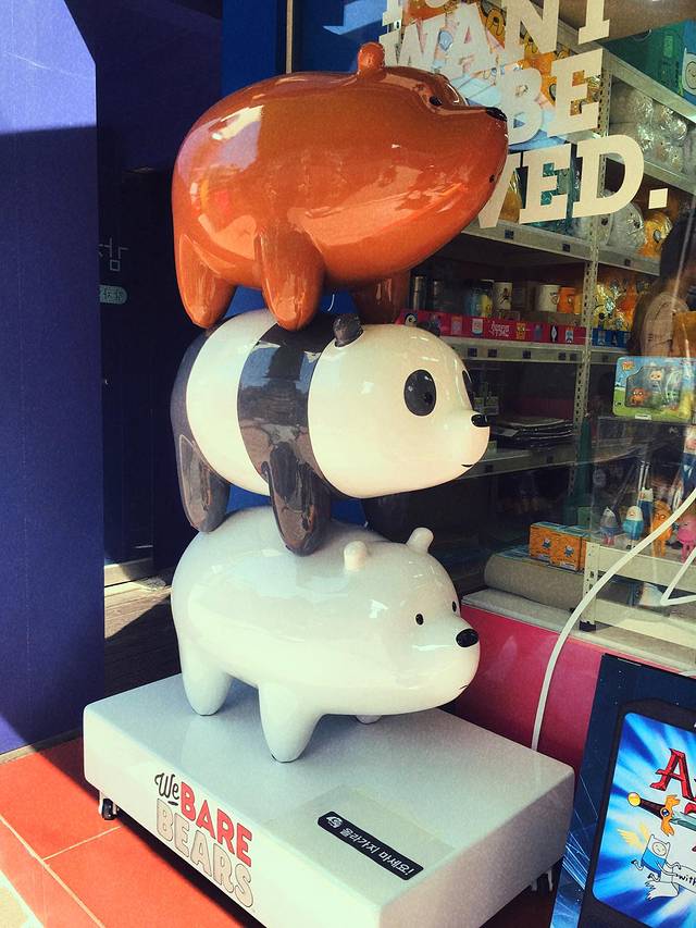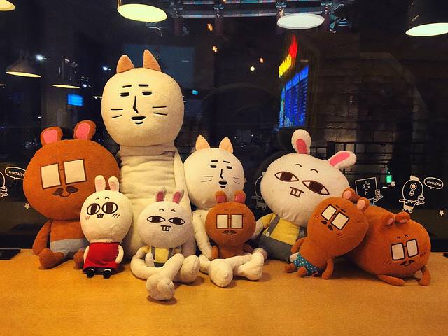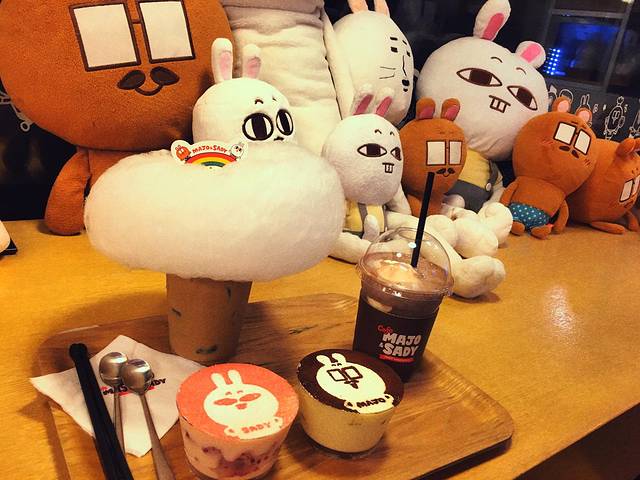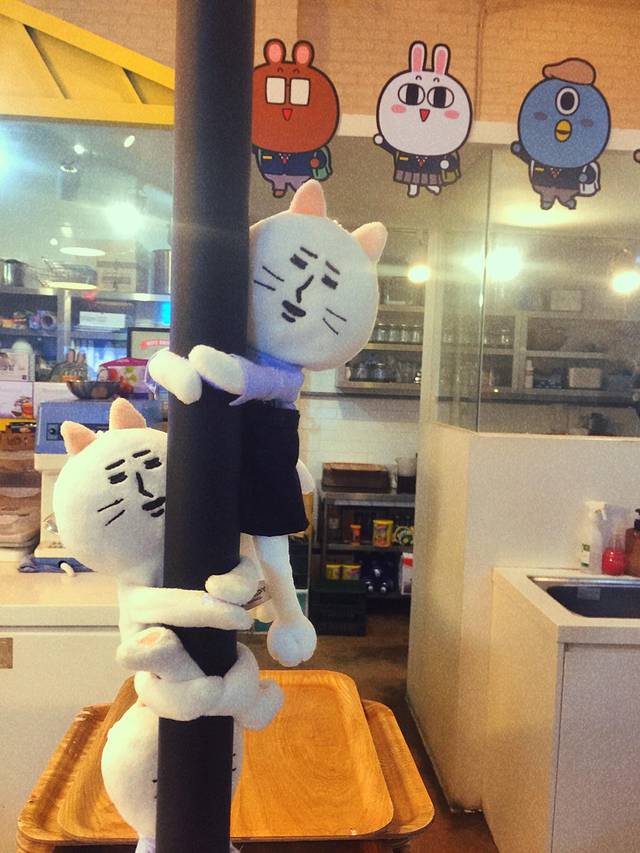 在弘大太热了没有找到好看的东西临时决定再去东大门,逛完了找到这家很可爱的咖啡店,闺蜜好爱毛绒玩具,在这里各种给她拍拍拍的😂