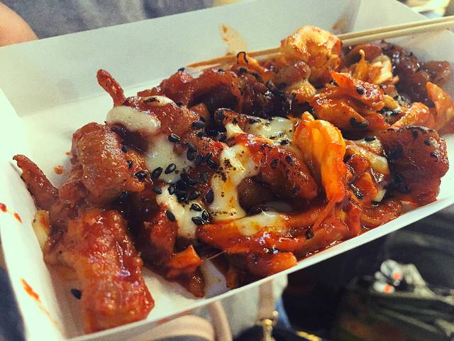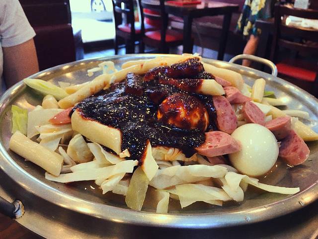 路上在鸭鸥亭站的时候出来我非要找这附近的明星大道,拉着闺蜜顶着大太阳找了半天也没找到,饿的不行随便找了个餐厅,随便点了个炒年糕还是什么的,味道一般