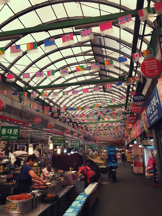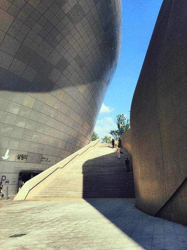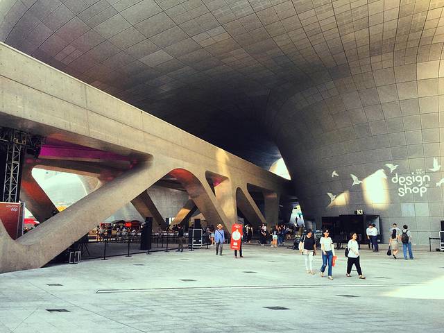 坐地铁到东大门历史文化公园站下,出来就是东大门设计广场,建筑很有设计感,太大了手机照不了全景,还是亲身感受吧,广场中央总有活动表演,我们赶上了一群乐队,没有拍照片了