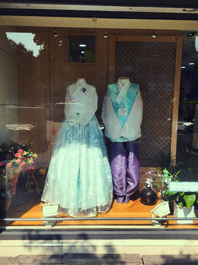 门口有一家超好看的韩服婚纱店,橱窗里的汉服太好看!!!! !!