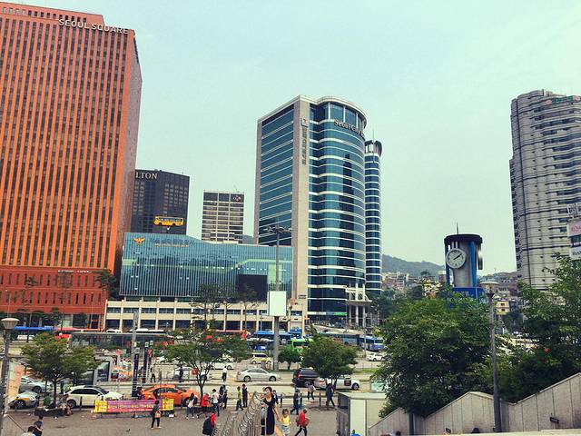 机场到明洞中间正好要到首尔站换乘,有个大超市【乐天Mart】,我们采购了下这几天需要的洗发水,零食泡面什么的,建议!免费试吃一定要吃!好好吃!悦诗风吟的散粉貌似太抢手了,哪里都没有,就这里的店有,嘘,要保密哟~不然就没货啦~