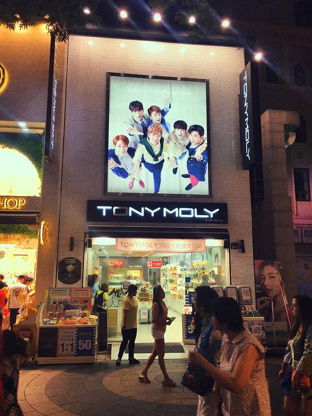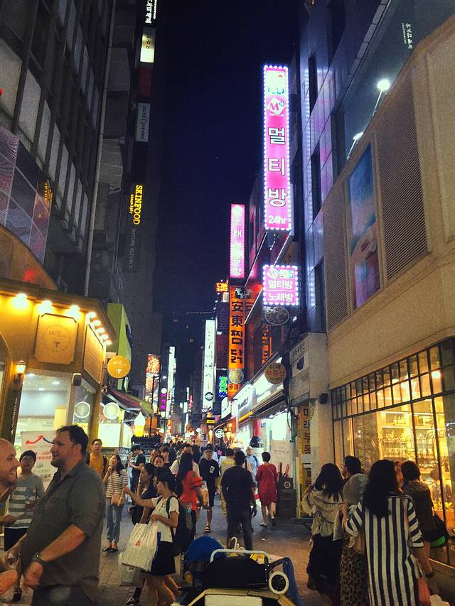 吃完烤肉我们在明洞小溜达了一下,人真是多,各种化妆品店,我们在地铁上看到连初中生都化妆,小红唇呀,果然全民化妆呢。随便看看就赶紧去坐地铁了,反正晚上回酒店还会再来逛。
