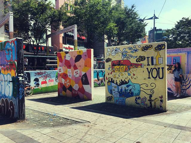 从梨大出来做了一站地铁到达弘大,地铁第一次感到了帝都早高峰的压力,人好多,到了弘大人更多,非常热闹,街上就有各种卖艺?表演的人,很吵很闹。