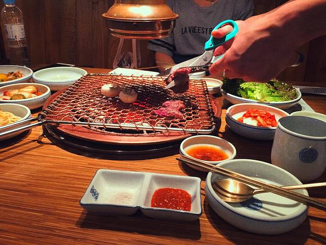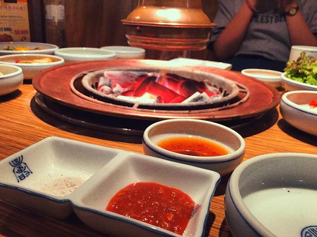 我们到酒店收拾好东西都已经3点半了,赶紧直奔第一个行程!吃烤肉!服务员都是蓝孩子。有会中文的,菜单也有中文不用担心,肉烤的刚刚好,还会告诉你用什么的酱料蘸着吃好,好吃,不知道是不是烤的好,比之前在国内吃的要嫩,就是价格略高,两人吃了500多块大洋,下回还想吃八色烤肉和哈哈的烤肉店还有姜东虎的烤肉店!烤肉好吃!就是爱吃肉!