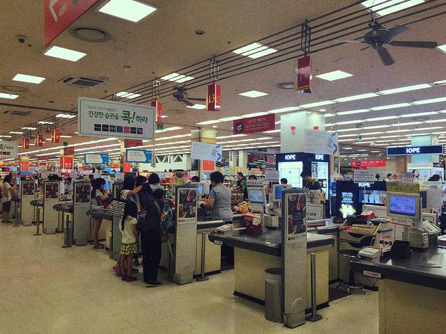 这里东西很全的,很多中国游客也有很多韩国本地人,购物袋是要收费的,但是门口有纸箱子打包的地方,买很多可以自己打包拿走