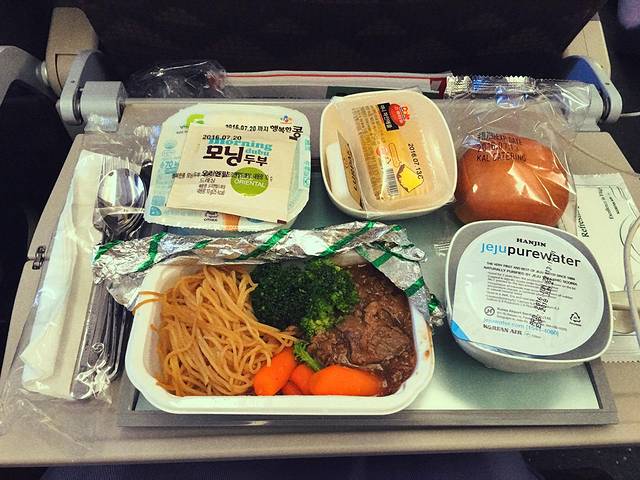 大韩航空的飞机餐很好吃,看着就很不一样有木有。空姐都好好看,颜值高大长腿,说话温柔,有韩国人也有中国人,不用担心语言的