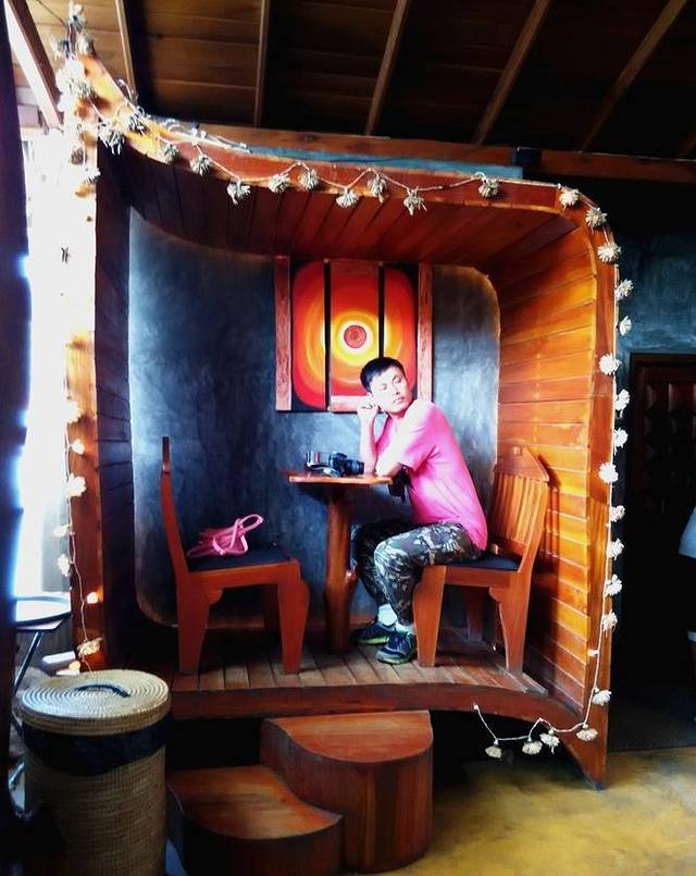 不过入住以后还是觉得比较值得的。老板在日本留学过。店内是多元素混搭风的: 日式饰品,欧式花园、中国水墨画、当地的叶子雕等等。眺望风景绝好,基本可以说将整个康提城尽收眼底,晚上的时候灯光错落,像是银河落入山间,美极。