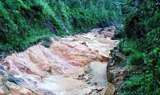 穿越森林的这一条路基本是干涸的河床组成的。一路能够看到潮湿的泥沙,和被河水冲刷的岩石。