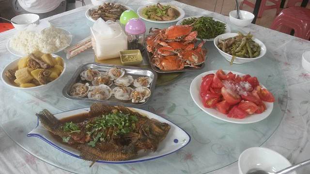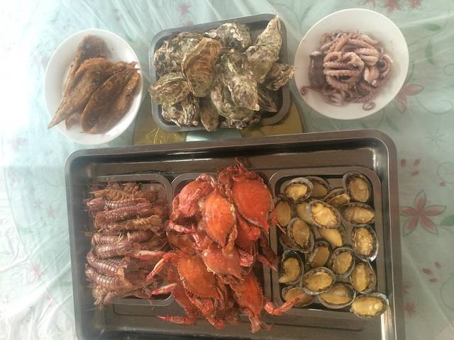 每人每天吃饭加住店150元!吃的海鲜很新鲜,住的不豪华,但是干净卫生,24热水,无线网信号也很好。