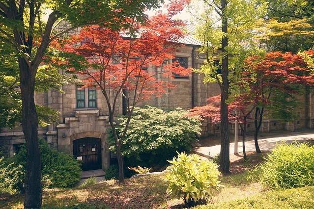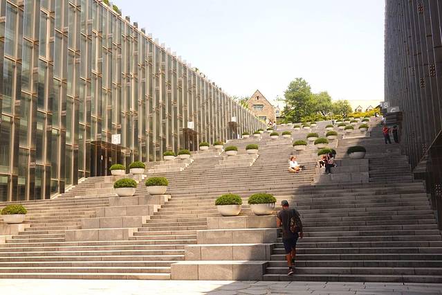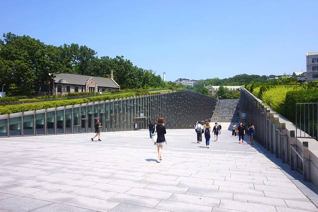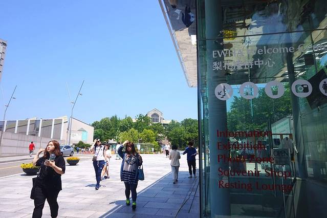 早上第一站就是梨花女子大学~感觉这里的学生课余活动超级丰富!各种活动的横幅门口好多社团在发宣传单!特别漂亮么不至于~建筑真的是特别有特色!