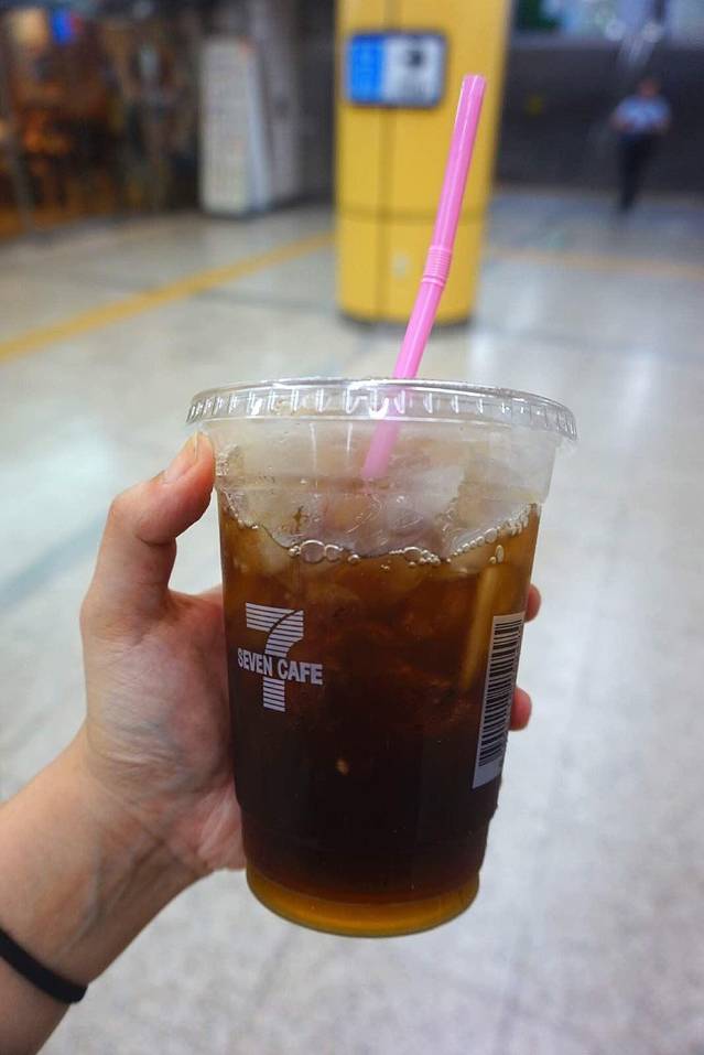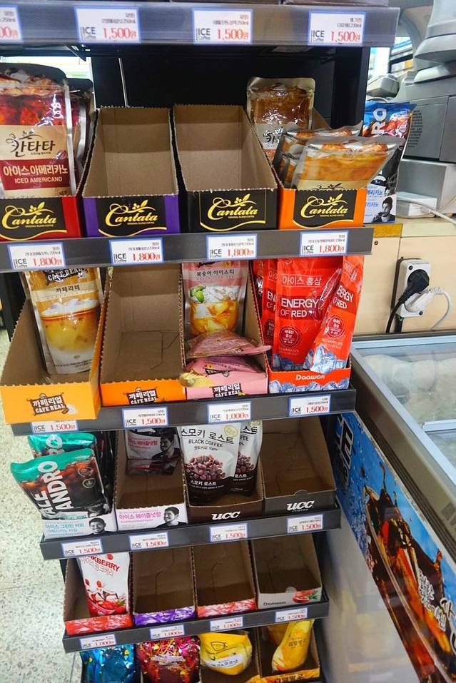 首尔真是便利店满天下!随处可见G25和7/11超市!每家超市几乎都会有这样一个柜子放着各种各样的袋装饮料。旁边会有一冰柜的装满冰的一次性杯子,买完袋装饮料后就可以自己倒进去啦~第一天我就尝试了柜子第二排最右边的红参茶,味道很不错!