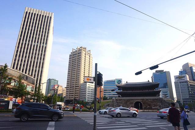 买完Isaac吐司我就这样一路从首尔走到了东大门,本来只想走一站的因为感觉在地铁上吃东西不礼貌但我真的太饿了,没想到走着走着就到了东大门!沿路的建筑依旧是很有特点!真的很佩服韩国人敢于把风格迥异的建筑混搭在一起!靠山而坐从风水上来说是不是还挺吉利的哈哈!前面在来条河那就更完美了!