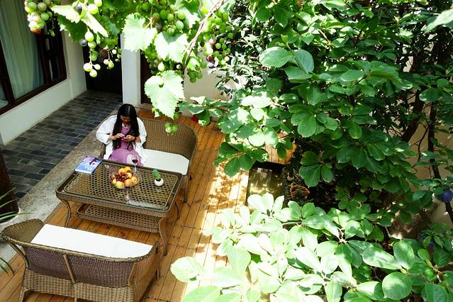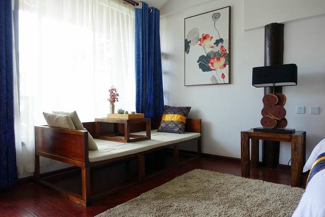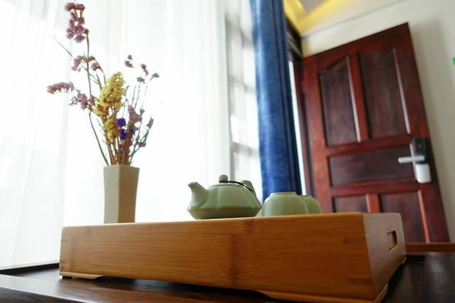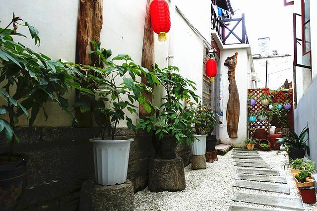 到了古城,下车是风花雪月大酒店,住的牡丹亭客栈离这不远,顺着古城东门走上去,过一个路口就到了,客栈门面有点小,但是打电话给客服,前台会来接,服务还是很贴心的。一条长走廊,走进去是一个院子,种了好多花,最里面的墙上还画了手绘。和院子的清新感不同,房间是和牡丹亭这个名字一样的古朴,台灯,床头柜,卫生间,墙上的画,装饰的屏风,花纹,都透露着古典的味道,看着就很安静,晚上应该会住得很舒服。