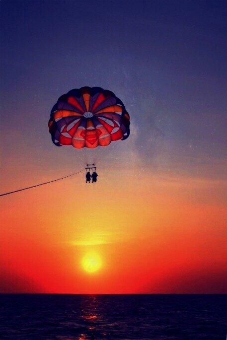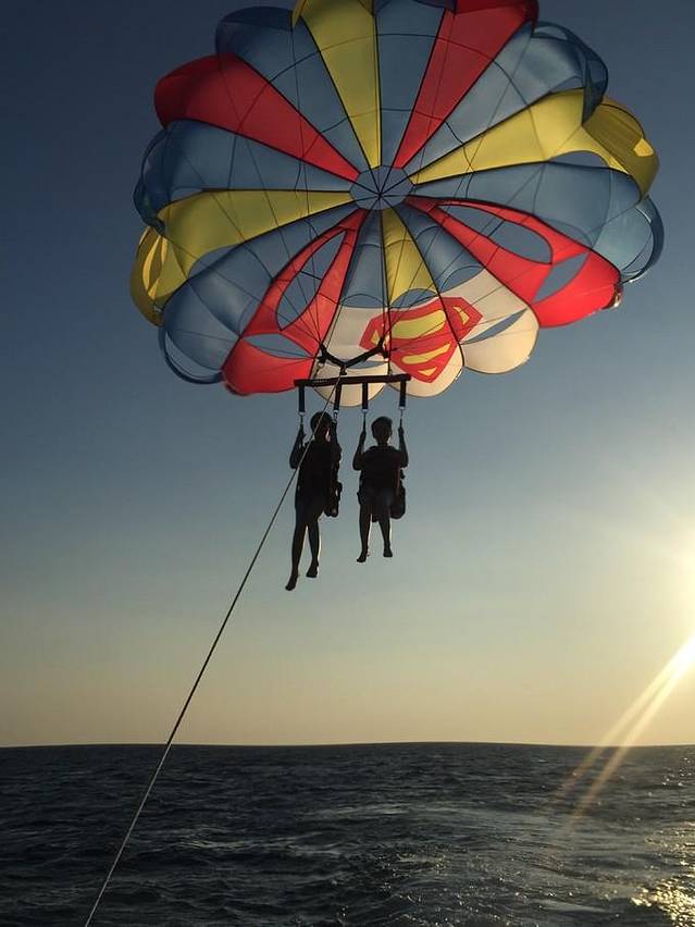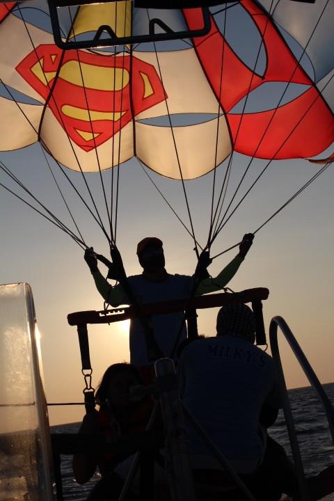 到达海洋公园,店员带我们步行到了海边,做了个小游艇把我们送到了坐降落伞的地方。