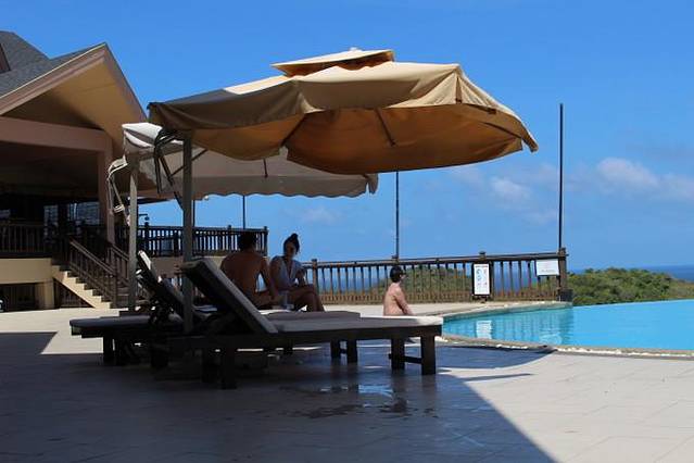 关于阿兰达酒店,我的客观评价:阿兰达酒店的大厅的环境不错,大厅有无边泳池,平常都很少人游泳,下水的时候感觉跟包场一样,很棒!酒店位于Yapak海滩一座小山上,距离DMall车程15分钟,距离白沙滩车程20分钟。酒店会提供每小时一班到DMall的免费班车。如果自己坐三轮车从酒店去白沙滩的单程价是¥23人民币左右一辆车(一辆车可坐6人)。 因为酒店在山上,所以比海边清静。阿兰达酒店离PUKA沙滩比较近~车程5分钟~