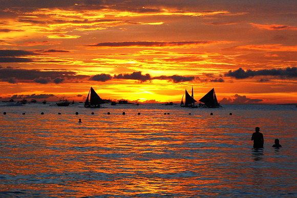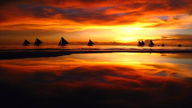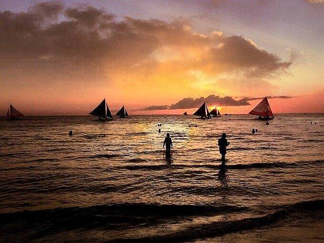 乘坐风帆赏日落是每位旅人来长滩岛必游的行程,迎着天边的夕阳,一同乘风破浪。