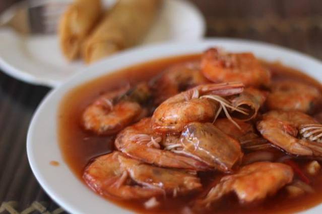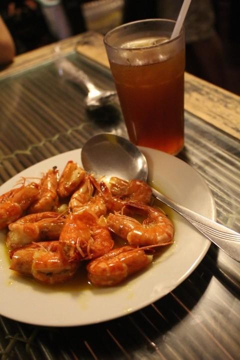 找到一家挺多人去的当地人吃饭的苍蝇小馆!特别特别好吃!人均35人民币。很多畅销的菜当天都已经售罄。畅销菜就只剩下芝士虾和猪脆骨饭。果然是相当好吃!