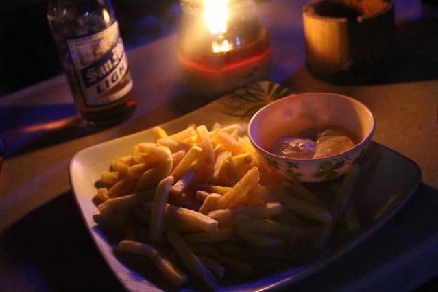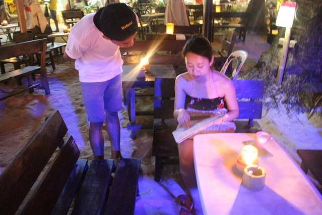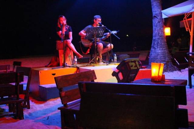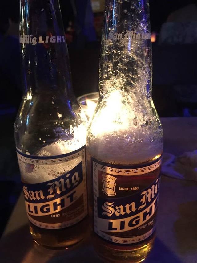 晚上去白沙滩上的一家酒店坐坐,两瓶啤酒240比索吧。当地特色啤酒,酒吧没有最低消费,喝着酒听着歌,很赞!