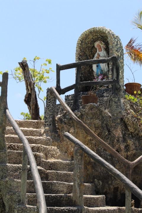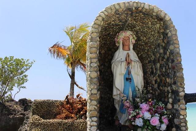 菲律宾长滩岛最有名的礁岩圣母岩礁(Willy's Rock),岩礁矗立在海中,当地的居民在上面供奉了一尊圣母像,所以取名圣母岩礁。礁石位于S1,退潮时候,甚至可以直接走到礁岩处,也因为圣母岩礁位于海中,能清楚眺望整片白沙海滩,以及清澈见底的海水,拥有绝佳的地理位置,是长滩白沙滩上的标志性景点,每天早上涨潮时礁石就到水里了,有看到人在它周围浮潜,等到退潮时就能爬上去拜拜上面的圣母像,日落时分人特别的多。像一道分界线,由它开始一侧热闹,一侧安静。