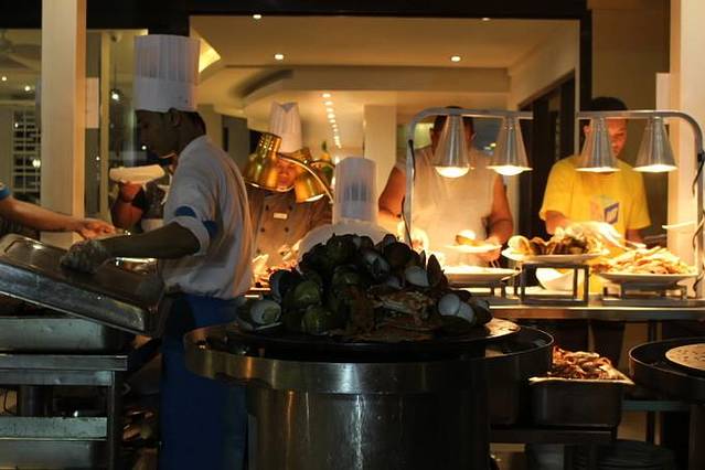 来长滩岛一定要去D·talipapa逛海鲜市场,满目琳琅的新鲜海鲜,物美价廉。我们两人买了一只大龙虾和面包蟹花了¥250左右,买了6个生蚝6个象牙蚌4个大贝壳花了¥225左右,(买海鲜的时候记得一定要猛砍价,往一半价格砍!)。海鲜加工费花了¥250左右(贵了!)后来听说更有经验的是100人民币1斤龙虾,加工要找当地的加工,可以找人多的、明码标价的海鲜加工店进行加工。