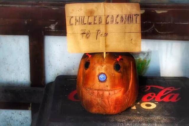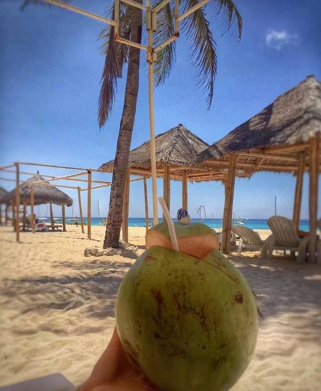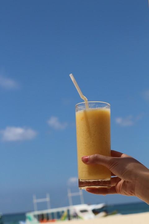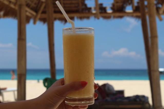 PUKA海滩的座椅不收费的,我们点了一杯芒果冰沙和一个椰子,各200比索,是白沙滩价格的3倍啊。