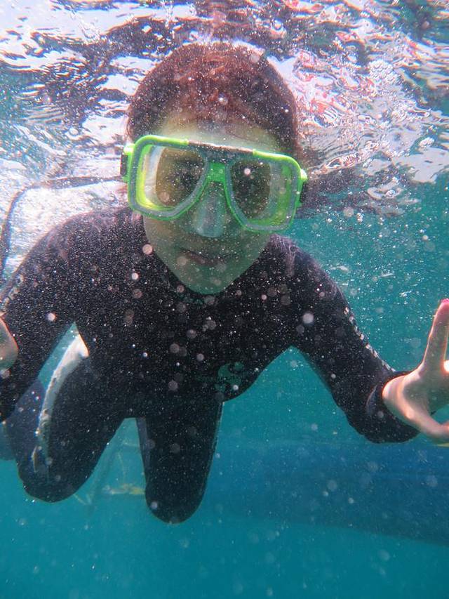 无广告费推荐下,人生第一次体验潜水,感觉棒棒哒,除了中途自己手欠瞎按了呼吸器喝了几口海水,但木有感到不适。在水下摸了小鱼,还看到了水蛇,遗憾没看到海龟等其他海洋生物。
