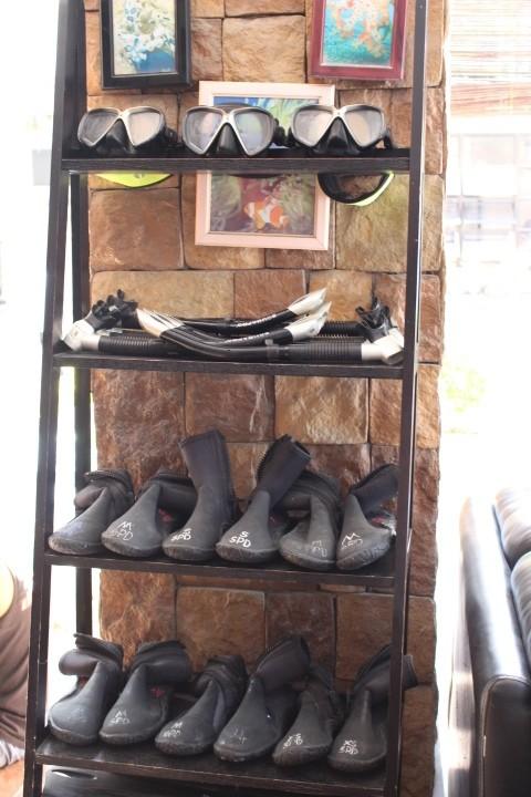 早上十点准时到了潜水店,碰巧和酒店认识的四个北京人碰上了。老板娘亲自教我们潜水的基本知识。真的,零基础不会游泳也可以体验潜水的!