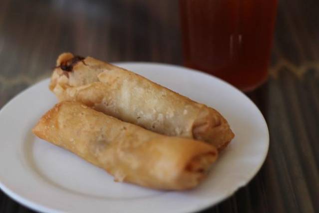 那个小春卷很好吃,里面包的是一根烧好的青辣椒,还有些肉沫吧,反正很好吃!
