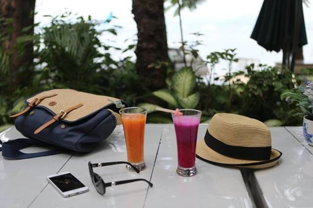 我们在天南客栈喝点东西,客栈被刷成纯净的天蓝色。