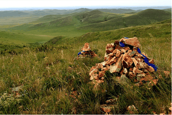 终于登上了瞭望山!所谓登高望远,哇!一望无际的天和地!你分不清哪里是起点,哪里是归途。四周空旷没有人声,只有我们的呼吸和百灵鸟,畅快的在这片草原起起伏伏。