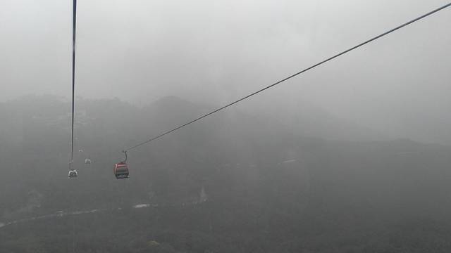 坐在索道上还是挺害怕的,这里对索道说明 一下,只售单程票,100元一个,1.2米以下小孩免票,不可刷卡,不可网上订网,那天去时现金带的少,差点回不来。