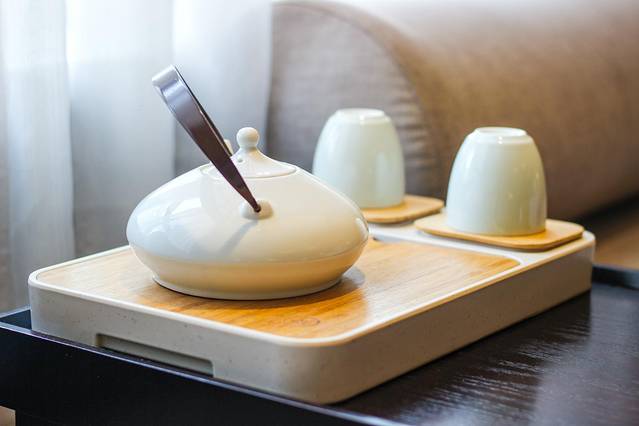 托盘的盒子里放好了twinings川宁茶,川宁茶是英伦下午茶的代表,经常会在五星级酒店的咖啡廊或头等机舱内见到它,一杯红茶,一块蛋糕,在酒店房间度过一个惬意的午后。