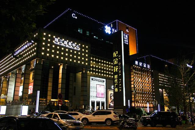 走出酒店,旁边就是世纪金花广场,购物、休闲、餐饮一应俱全,南门附近还有很多餐厅、酒吧,城墙上亮起灯光,这是属于西安的夜生活。