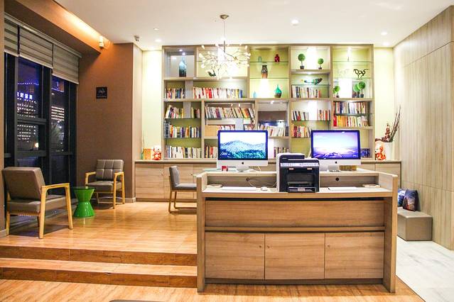 酒店的小型图书馆,可以坐在这里读书,也可以免费借阅,异地归还,来一场“书”式旅行。