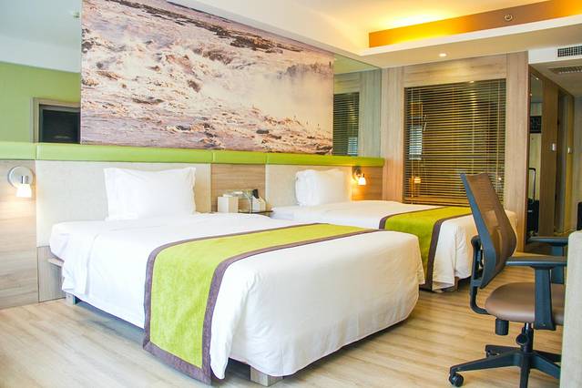房间简约大气,清新淡雅的色调在炎炎夏日带来一丝凉爽,木质装修也是我很喜欢的风格。