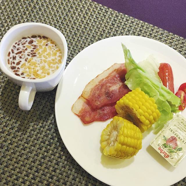 我的早餐,燕麦牛奶加玉米培根,是不是搭配的很好呢~