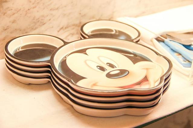 餐厅还为小朋友准备了儿童餐具,可爱的米奇盘子和叉勺,带着孩子来这里,还怕他不好好吃饭吗。