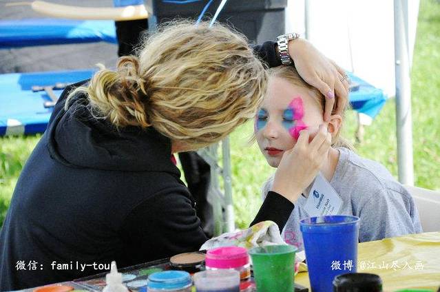 孩子最喜欢脸画,个个玩起了变脸。为孩子们画脸画的都是志愿者。好有爱!