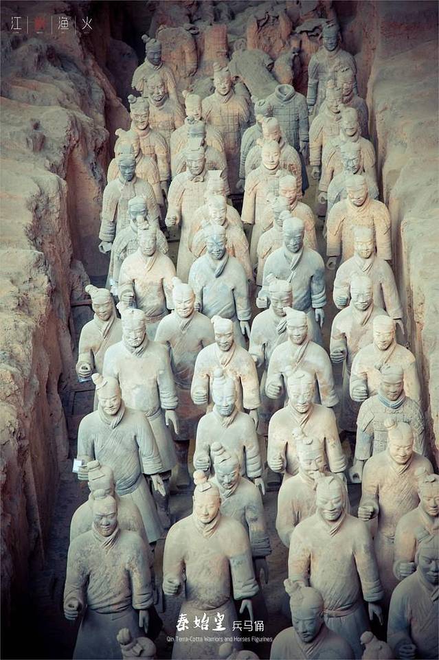 面对威武整肃的庞大军阵,你们的脑子里一定会闪现如下问题:这些秦佣是怎么发现的?为什么他们的相貌各异?为什么要制作这些俑?1、2、3号坑里共有多少俑等等